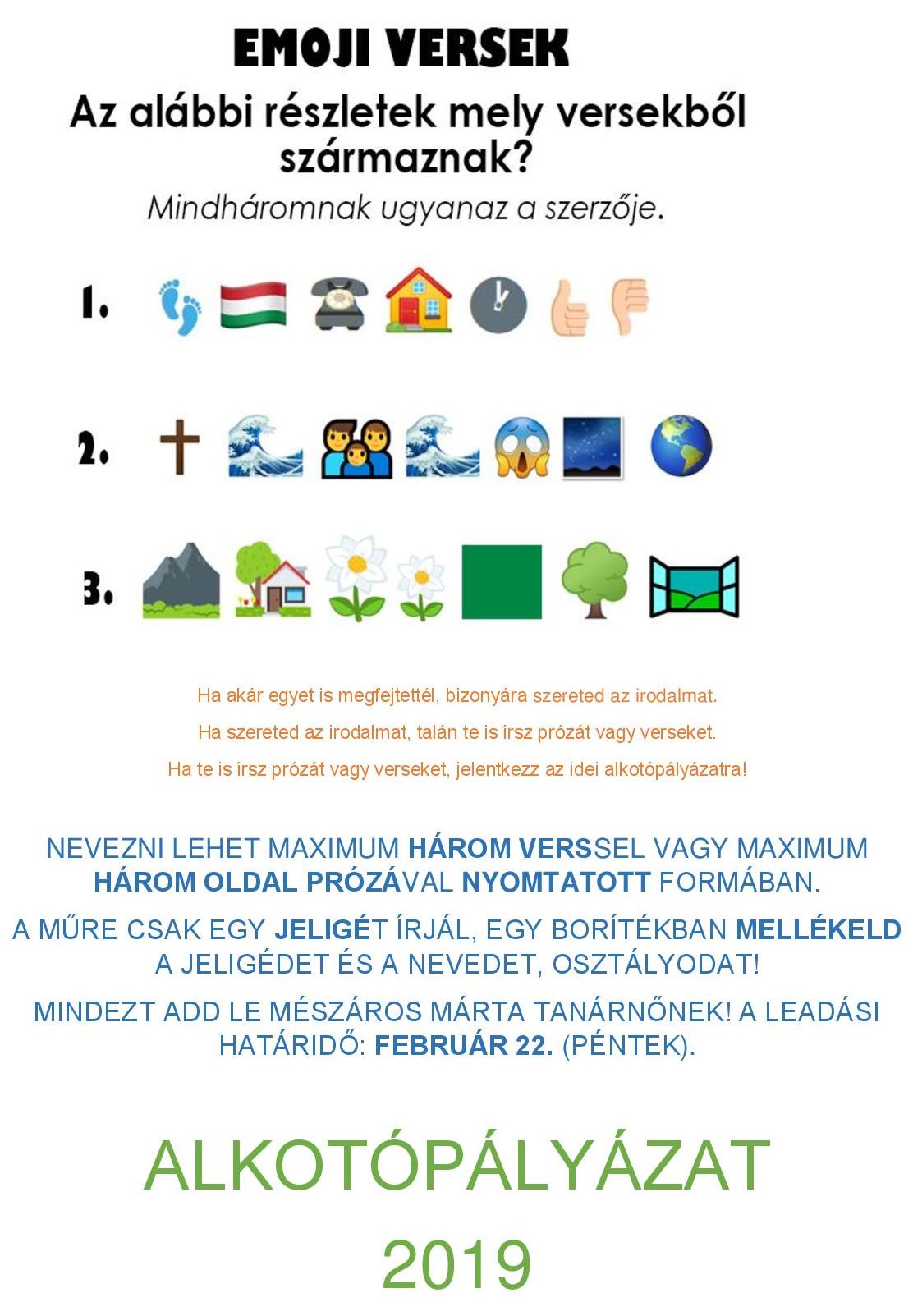 Az idén is várjuk maximum három versedet vagy 3 oldalas prózai írásodat az iskolai Alkotópályázatra.