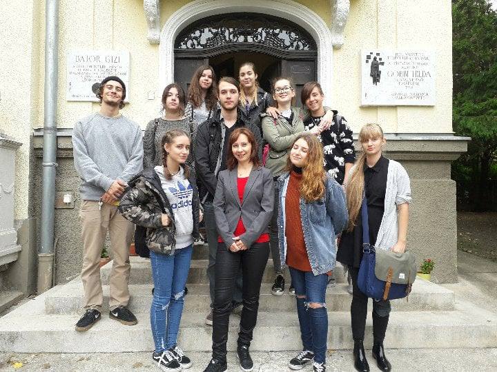 Iskolánk 12. évfolyamos magyar fakultációs csoportja 2017. szeptember 20-án Kelemen Krisztina tanárnővel részt vett egy játékos tárlatvezetésen a Bajor Gizi Szinháztörténeti Múzeumban. Miután szobáról szobára járva végigvettük egy színházi előadás elkészülésének egyes állomásait, csoportunknak egy rövid színdarabot is ki kellett találnia a múzeumban kiállított képek, tárgyak segítségével.