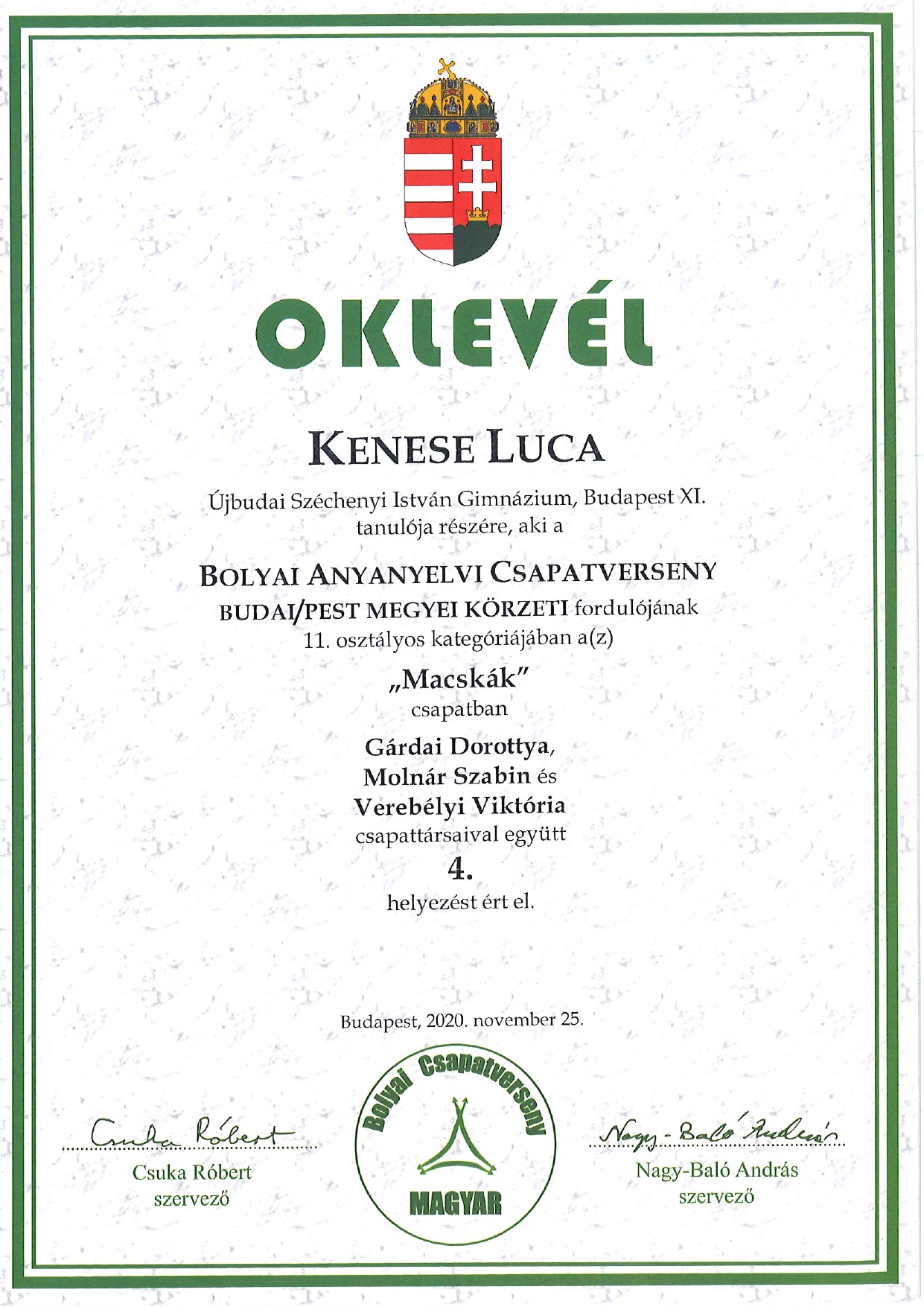 Bolyai Anyanyelvi Csapatversenyen.