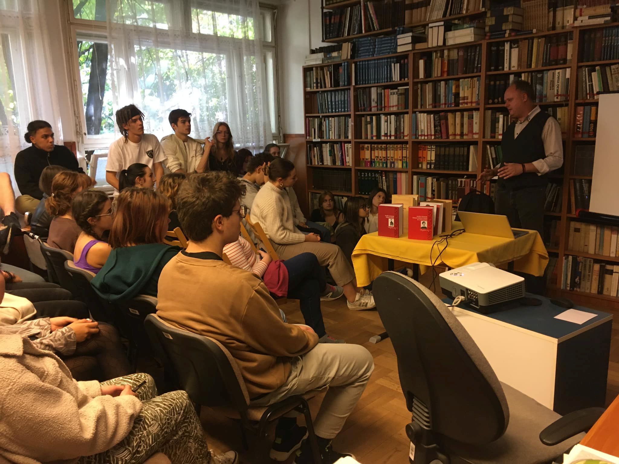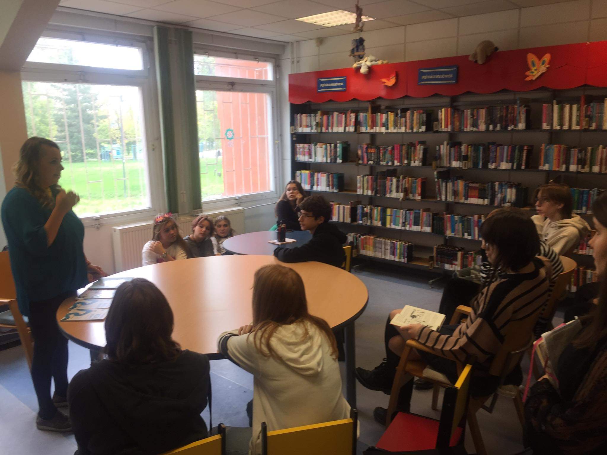 A 11.A osztály egy érzékenyítő foglalkozáson vett részt a Karinthy Könyvtárban. A program keretében 7 speciális problémával küzdő személlyel, Élő Könyvvel (pl. látássérült, hallássérült...) beszélgettek a gyerekek 3-4 fős csoportokban, tapasztalataikat pedig az osztályfőnöki órájukon dolgozták fel.