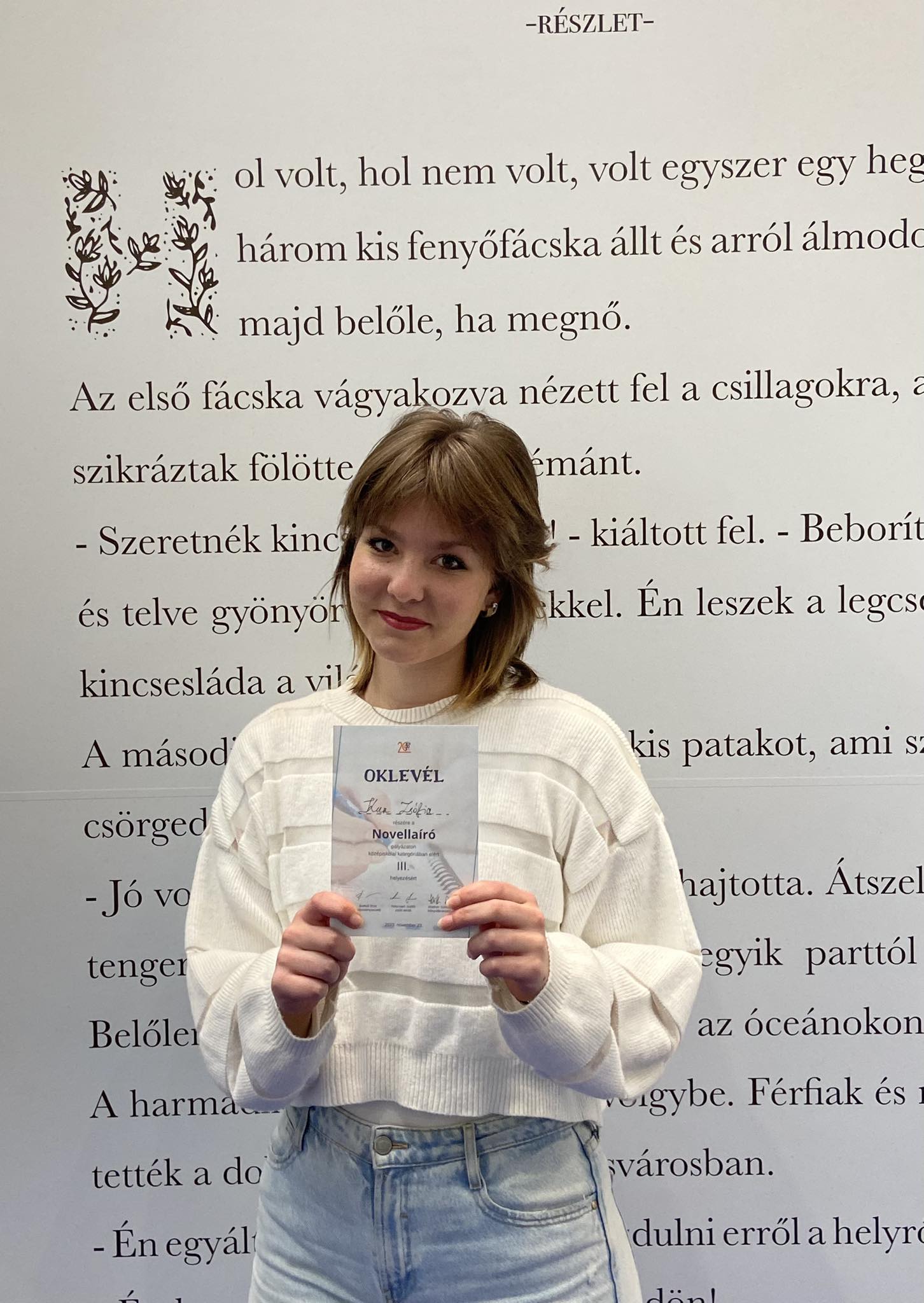 Suri Nikolett 12.C osztályos tanuló különdíjban részesült a Kéz a kézben című novellájával a SiópArt országos irodalmi pályázatán.