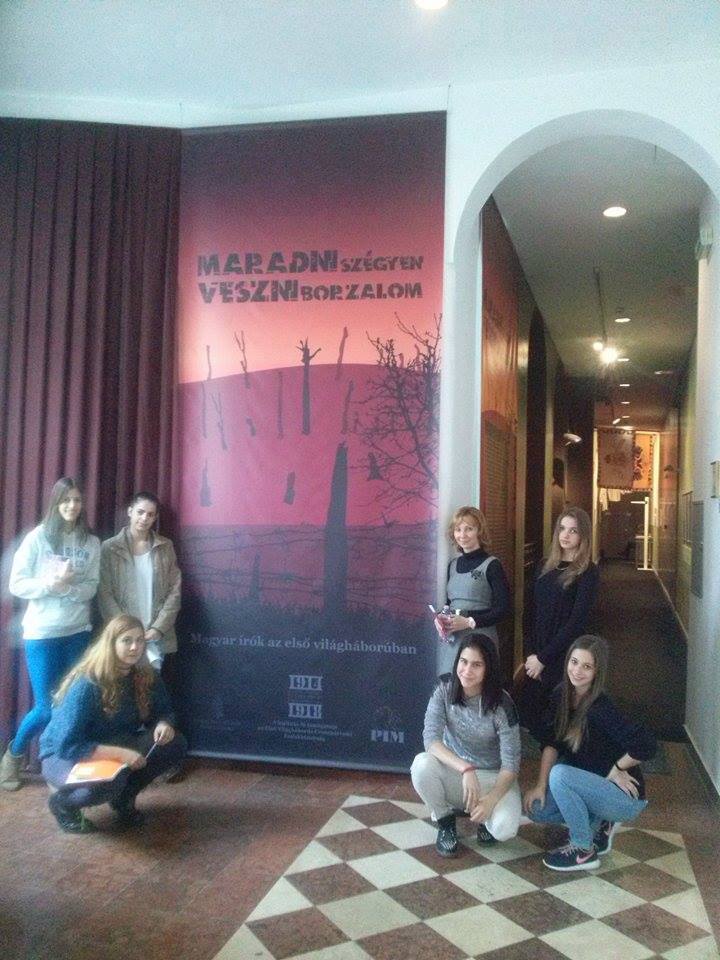 2015. október 13-én a végzős, emelt szintű magyar fakultációs csoport a Petőfi Irodalmi Múzeum "Magyar írók az első világháborúban" című kiállítására látogatott el. A kiállítás berendezése élethű és izgalmas, a tárlatvezetés pedig informatív és szórakoztató volt. Ajánljuk figyelmébe mindenkinek, akik reális képet szeretne kapni a magyar irodalom és az első világháború megrendítő kapcsolatáról.