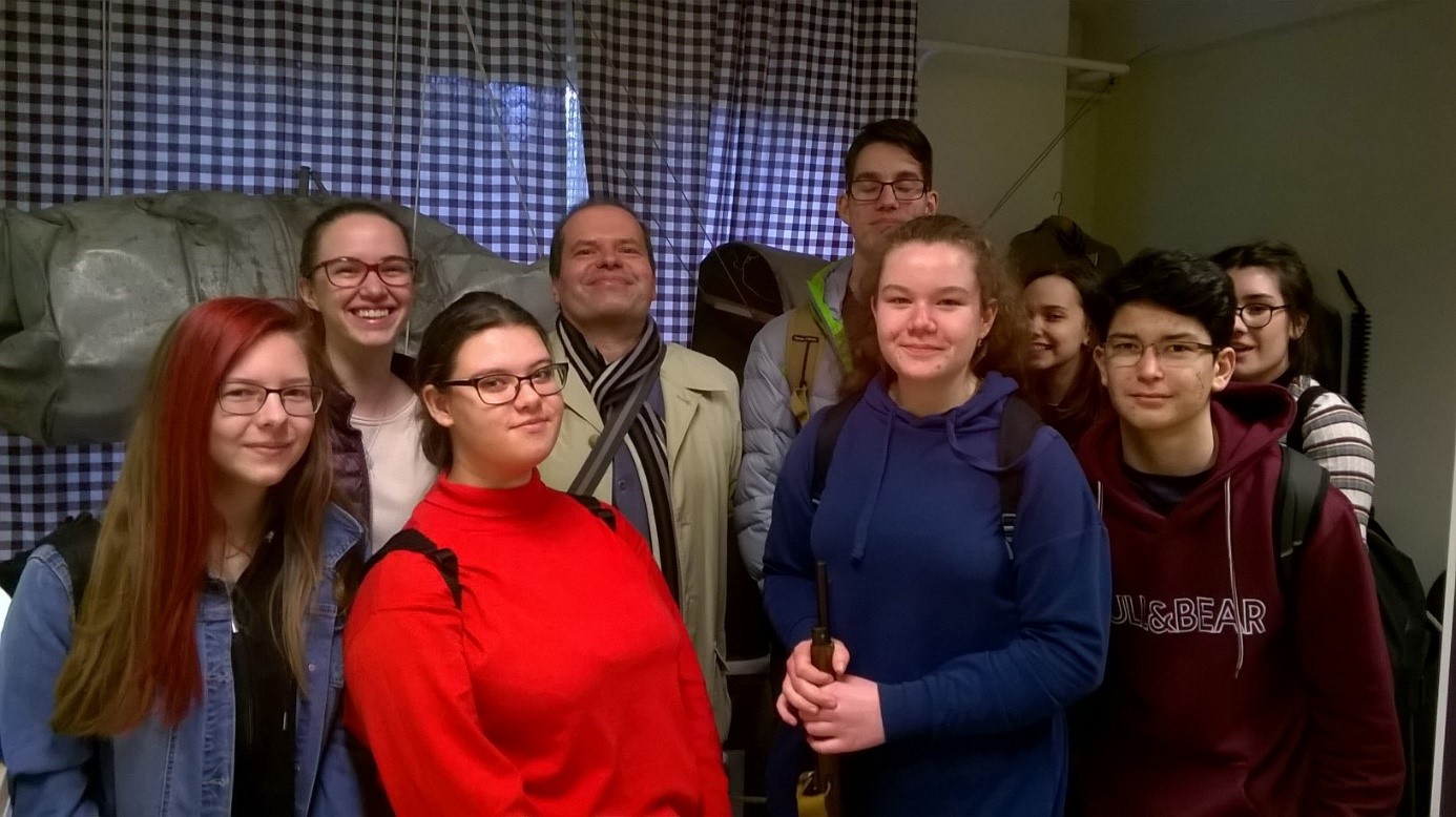 Iskolánk 10.B osztályos tanulóinak egy csoportja látogatást tett az Erődítés Történeti Egyesület Karolina úti múzeumában és megtekintette az egyesület "Budapest ostroma 1944-1945 és légoltalom a II. világháborúban" című kiállítását. A kiállításon iskolánk volt tanulója és az Egyesület egyik alapítója, Csecserits Artúr vezette végig tanulóinkat, akinek előadása rendkívül érdekfeszítő volt, sikerült életközelivé tennie a letűnt történeti kort. Tanulóink rendkívüli érdeklődéssel hallgatták az előadást és nagyon sok ismerettel gazdagabban tértek haza a kiállításról!